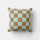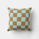 A light blue and brown checkerboard pillow with a bold geometric style. Perfect for modern decor.