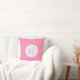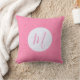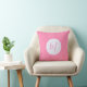 Throw pillow made special with a pink initial inside a white fractal circle of squiggly squares. Background is light pink squiggly squares. Make a room special for mom or your favorite lady. Lovely Mother's Day or birthday gift.