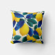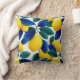 Almofada Limão Vibrante e Folhas Azuis Padrão de Aquarela