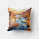 Este travesseiro decorativo único apresenta uma ilustração colorida de um rio num deserto.