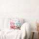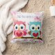Menino e menina corujas fofos e fronha de almofada de flores em rosa, azul e branco. A frente diz "Tudo que você precisa é amor". Atrás diz "amor é tudo que você precisa". Arte original KL Stock.