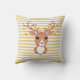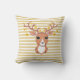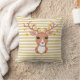 Lindo cervo de Natal decorado com bolas douradas em uma almofada de lançamento de fundo listrado.