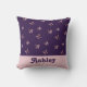 Você tem uma pequena dama especial que gostaria de dar as boas-vindas à sua família ou círculo de amigos? Talvez você esteja projetando uma nursery com tema de borboleta. Esta almofada apresenta pequenas borboletas cor-de-rosa de cetim que adejam em torno do fundo roxo escuro. A parte inferior da almofada exibe uma faixa cor-de-rosa claro sólida junto com o nome do bebê. A parte de trás tem a mesma cor de fundo roxo real sólido que a frente. Altere rápida e facilmente a cor do texto e do fundo.