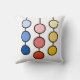 Luzes amarelas vermelhas e bonitas modernas em círculos pendurados decoram em Travesseiro decorativo branco de fundo.