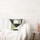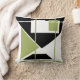 Apresentados são formas e linhas ousadas, abstrato, geométricas em verde-oliva, preto e branco, principalmente triângulos, que se juntam para um design contemporâneo, inspirados no estilo Moderno do século Médio. O design é transposto horizontalmente de cada lado para efeitos complementares, mas diferentes. Esta arte moderna é sofisticada e elegante, projetando uma vibração artística, polida, mas confortável e relaxada para a área viva, o quarto, o espaço de trabalho, o terraço ou a decoração do pátio. A design também oferece um sentimento de calor e tranquilidade. Há muito potencial decorador nesta peça de sotaque, que se ajustado em vários estilos (inovadores ao tradicionais), desde retrô/safra até fazenda moderna ao estilo rústico de hacienda a loft urbano e alta ascensão.