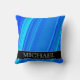 As características deste design do travesseiro um teste padrão com linhas coloriram várias máscaras das cores como azul e ciano. Igualmente caracteriza um nome personalizado.