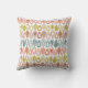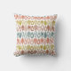 Este travesseiro decorativo tem um design de boho de ovais pontiagudos em boho tons rosa, azuis, dourados e marrom.