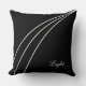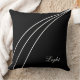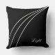 Linhas onduladas abstrato branca modernas em Travesseiro decorativo preto prateado. Design simples, mas elegante, combina com a maioria das cores. A caligrafia de texto pode ser personalizada.