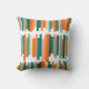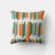 Este travesseiro decorativo tem um padrão de linhas em cor de rosa e laranja em comprimentos variados.