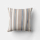 Almofada com padrão de listras sofisticadas apresentando listras bege e azuis em um fundo branco.