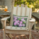 Destaque os seus móveis de jardim com esta linda almofada floral rosa. Esta almofada exterior apresenta uma fotografia de flores de hortênsia rosa sobre um fundo verde caçador. A listra rosa é usada para enquadrar a foto da flor. A parte de trás é uma cor verde caçador sólida. Use esta almofada ao longo da temporada de verão, para uma ocasião especial como o Dia das Mães, festa de jardim ou para todos os dias.