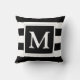 Este travesseiro decorativo preto e branco tem listras e pode ser monogrammed com sua inicial.