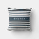Almofada Listras Amplas Contemporâneas com Nome em Azul de