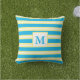 Adicione aconchego ao seu espaço de estar ao ar livre com almofadas. Esta almofada quadrada apresenta listras em turquesa, amarelo e branco. Adicione seu monograma a esta almofada ou personalize-a com seu nome. As almofadas são uma ótima maneira de acentuar sua área de assentos, tornando-a atraente. Compre para si mesmo ou compre como um presente de casa nova ou outra ocasião especial para aquela pessoa especial. Se preferir usar dentro de casa, edite para alterar o tecido.