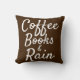 Você está procurando uma legal ideia de lar ou presente de Natal para um amante de livros na família? Que tal este travesseiro de sotaque cor castanho-do-café que diz 'Livros e Chuva de Café' impresso em legal letras brancas cursivas em ambos os lados? Não é perfeito? O outro lado tem um fundo de cor de cinza.