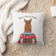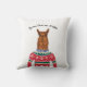 Engraçado travesseiro decorativo de Natal Feriado com um Llama vestindo um doce nórdico de Natal "Feio" contra um fundo branco de inverno. Na verdade, achamos que ele é preferencialmente fofo! Adicione o texto personalizado acima ou exclua. Faz um presente perfeito de Natal e aniversário de inverno para amantes de Llama. Excelente também para festas de natal de elefante branco ou de troca de presentes de Papais noeis secretos.