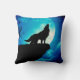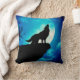 Almofada Lobo na silhueta uivando até a lua de cheio
