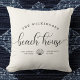 Caligrafia moderna, com script chic, lendo BEACH HOUSE ao lado do seu nome familiar em uma design motriz de tipografia. Excelente de travesseiro personalizado para decoração doméstica para sua casa longe de casa. Tanto romântico como na moda, nosso travesseiro neutro de creme de marfim apresenta uma ilustração de uma cola doce entre sua localização e o ano estabelecido.