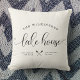 Caligrafia moderna, com script chic, lendo LAKE HOUSE ao lado do seu nome familiar em uma design motriz de tipografia. Excelente de travesseiro personalizado para decoração doméstica para sua casa longe de casa. Tanto romântico como na moda, nosso travesseiro neutro de creme de marfim apresenta uma ilustração de canoa doce entre sua localização e o ano estabelecido.