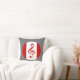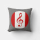 Este travesseiro decorativo mostra o logotipo oficial do artista gravador Scott Ruhs. O logotipo design é baseado na bandeira canadense com fundo branco e bares verticais de vermelho nos lados esquerdo e direito de um emblema circular. Neste logotipo design, a folha vermelha de bordo que normalmente se encontra na bandeira canadiana foi substituída por uma clave vermelha de mesa.