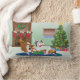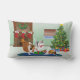 Três prateleiras estão puxando a fita vermelha, soltando um presente de Natal. Um adulto sable, um cachorrinho e uma ovelha azul de pântano. Você pode adicionar seus nomes de animais de estimação às meias na lareira, com um fundo verde. Imagem da artista ©Jacqueline Schneider