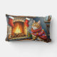 Almofada Lombar Abyssinian Cat Sitting by Fireplace with Christmas