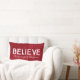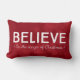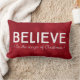 O padrão vermelho-escuro do livro, com um tipo de bloco colorido branco doce, e a design do script "BELIEVE In the mágica of Christmas" (CRENÇA na magia do Natal).