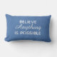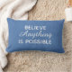 Este design apresenta um fundo texturizado de veludo azul junto com o texto "Acredite que tudo é possível". Este travesseiro personalizado faz um presente inspirador excelente. Disponível em três tamanhos.