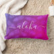 Aloha. Traga um pouco de hospitalidade na ilha havaiana para dentro de sua casa com este brilhante, colorido, chic, impressionante, na moda, moderno travesseiro decorativo lombar, nítida tipografia manuscrita branca sobre um padrão gráfico, abacaxi em uma vívida ombre roxa e rosa-quente. Faz uma declaração divertida e na moda cada vez que você relaxa. Um excelente adicional à sua sala de estar ou quarto, assim como um presente maravilhoso para um amigo! Você pode personalizar facilmente este travesseiro decorativo lombar. Por favor, me mande mensagens com quaisquer perguntas ou solicitações.