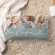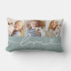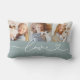 O design de travesseiro decorativo lombar personalizado moderno e na moda apresenta uma colagem de fotos de três (3) fotos favoritas com um design de tipografia simples e minimamente branca de "Amor" que inclui detalhes florescentes e cardíacos. As cores verde e branca da cinza neutra podem ser modificadas.