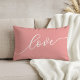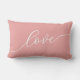 Um design minimalista e simples com a palavra "amor" escrita no centro da almofada em um script delicado e fluído. O script tem floreios elegantes que se estendem horizontalmente até as bordas, transmitindo uma sensação de movimento e alegria. Esta almofada moderna e romântica é perfeita para decoração de quarto ou como um detalhe no Dia dos Namorados.