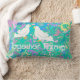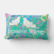 Duas pombas brancas pousam em uma árvore floral colorida em um fundo estilo art déco. Personalize esta almofada com nomes e mensagem de sua escolha. Um presente de aniversário, chá de panela ou casamento doce e atencioso.