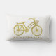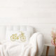 Este travesseiro à moda mostra uma bicicleta colorida ouro, com as palavras "aprecia o passeio" em um fundo branco.