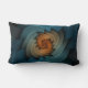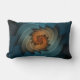 © 2008 de Copyright, Susan Wallace. A lâmina afiou a espiral da laranja vívida em um fundo textured do azul de turquesa. Design feito sob medida para caber o travesseiro lombar retangular; travesseiro decorativo quadrado igualmente disponível.