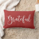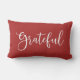 Um simples travesseiro decorativo moderno com a palavra grata sobre um fundo de cor vermelha. Uma boa adição à sua decoração de Ação de Graças. Vem em uma variedade de cores. Projetado para você pelo Blackberry Boulevard.