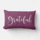 Um simples travesseiro decorativo moderno com a palavra grata sobre um fundo colorido de ameixa. Uma boa adição à sua decoração de Ação de Graças. Vem em uma variedade de cores. Projetado para você pelo Blackberry Boulevard.