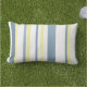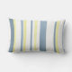 Travesseiro impresso com pintura de cor d'água original de listras em amarelo, azul e branco.