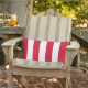 O design travesseiro exterior simples apresenta um padrão de extensas faixas verticais de cabana brancas com um fundo vermelho. Design clássico com qualquer estilo de decoração. A cor de fundo pode ser modificada.