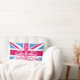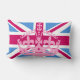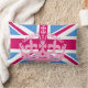 Union Jack Flag com Travesseiro de Coroa Rosa exibe uma coroa vintage sobre a bandeira britânica. Eu usei azul claro e rosa quente para uma torção divertida. Gráfico criado por Divino Gráfico