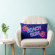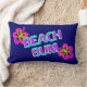 Vozes engraçadas de Beach Bum dizendo em aflitivas letras de madeira em cores brilhantes e azuis oceânicas com um contorno amarelo arenoso em azul. Perfeito para descansar à volta da praia, piscina de natação ou quintal. Clique em Personalizar para alterar o tamanho da imagem, as cores de fundo do travesseiro e muito mais.