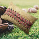 Uma fotografia macro de um velho usado, Salgemado, esgueirado, Vintage Baseball com costura vermelha. Presente perfeito para a aberração de beisebol ou fanática desportiva. Fotografia de Travis L. Lagasse de Gráficos Flowstone.