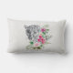 Travesseiro lombar com uma bela ilustração apresentando uma cinza, um retrato leopardo preto e branco. Este adorável animal está cercado por um buquê de flores tropicais. Elegante, exótico e adorável.