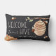 Bem-vindos a convidados com este travesseiro decorativo lombar bonitinho, com ilustrações aquáticas de abelhas melíferas, colmeia e colmeia, com "bem-vindos à nossa colmeia" em letra de marfim. Personalize com o seu nome de família na parte inferior.