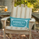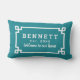design lombar na moda apresenta um design geométrico geométrico branco grego-chave e um monograma que pode ser personalizado com um sobrenome casado ou familiar, data estabelecida (pode ser o ano de casamento ou o ano em que o primeiro filho foi nascer). Personalize o fundo verde azul teal para coordenar com a decoração exterior.