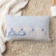 Um travesseiro lombar com um design de Natal mágico. Condecorações de árvores de Natal juntas em uma neve branca. O fundo tem um padrão branco (luzes desfocadas) com flocos de neve em queda. Captura perfeitamente a maravilha e a magia do Natal.