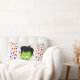 Um travesseiro lombar com um adorável rosto de monstro frankenstein. Ele tem olhos grandes e um sorriso com uma cicatriz na testa. Pinos clássicos saindo dos lados de sua cabeça. Esta cara é realmente fofa e não assusta de todo. Pontos roxos e laranja ao longo dos lados.