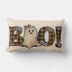 Travesseiro de sotaque russo do Halloween com a palavra Boo! em xadrez ousada e letras de leopardo, com um fantasma adorável vestindo um arco. O estilo inspirado na fazenda combina encanto com vibrações assustadoras, fazer perfeito para sofás confortáveis, decoração de varanda ou sotaques sazonais festivos. Uma escolha bonita e tenda para decoração de Halloween.