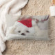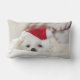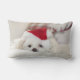 Almofada Lombar Cachorro Branco bonito num chapéu de Natal Vermelh