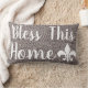 Fundo de cor marrom e branco acentos, cor-de-rosa, com revestimento padronizado de ossos. O centro apresenta um texto branco dizendo "Bless This Home" com uma pulseira branca. Frente e traseira são iguais.