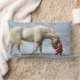 Uma bela imagem de um cavalo branco sendo liderado por uma menina em um casaco vermelho durante uma tempestade de neve enfeita este travesseiro americano MoJo. Perfeito para si mesmo ou como presente. PERSONALIZÁVEL.
